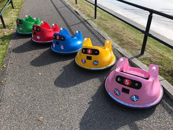 バンパーカーとは、車両の周りにゴムのクッションがついていて、障害物にぶつかっても傷つけませんし、乗っているお子さんに、大きな衝撃がありません。