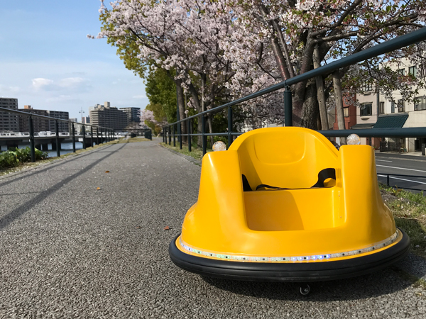 バンパーカーとは、車両の周りにゴムのクッションがついていて、障害物にぶつかっても傷つけませんし、乗っているお子さんに、大きな衝撃がありません。