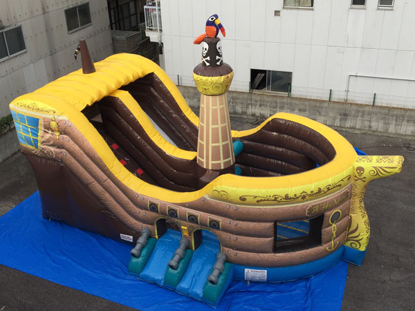 海賊船がテーマのふわふわです。会場がとても象徴的で、わくわくする形をしています。